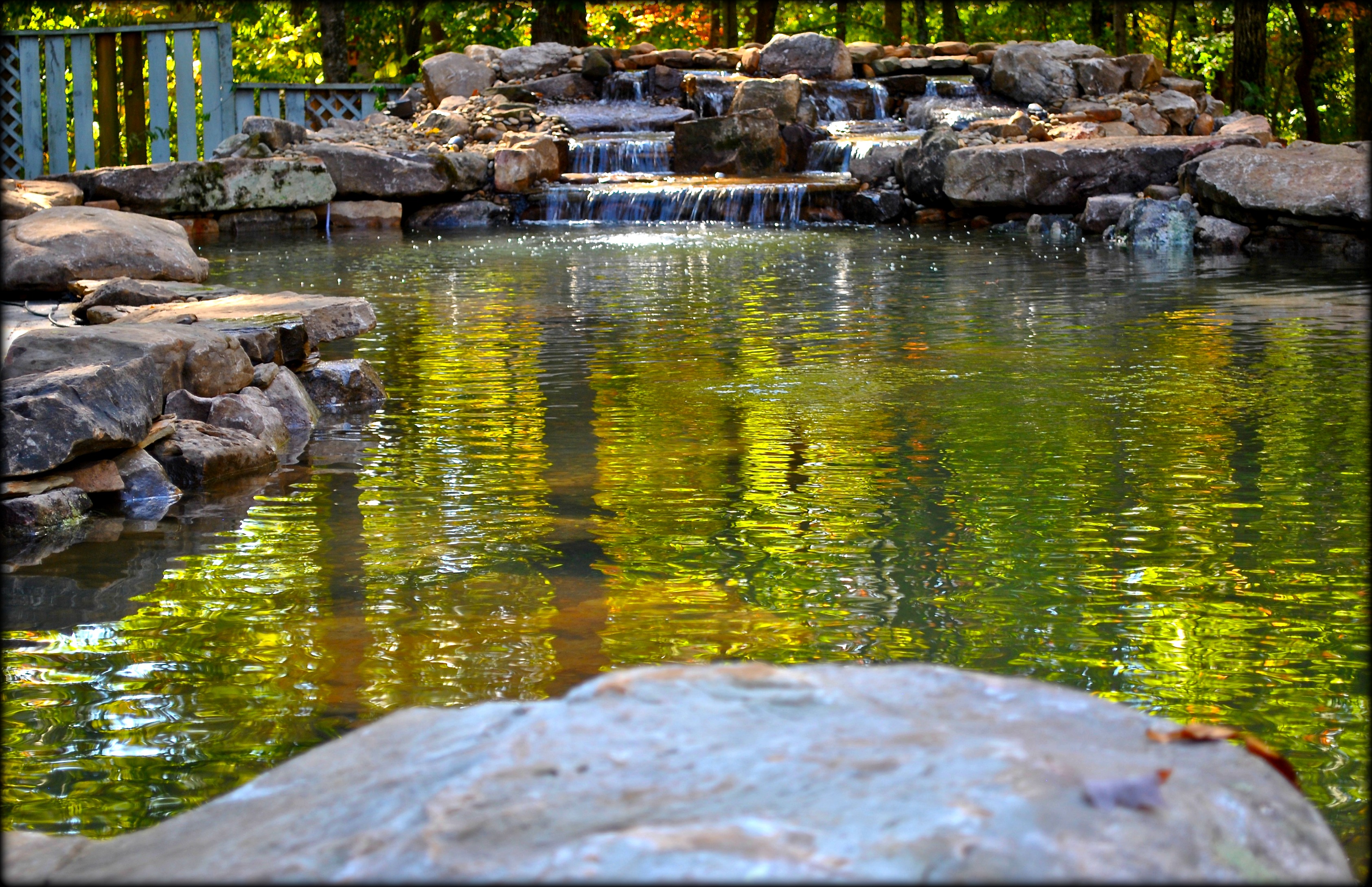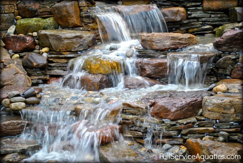 Enjoy the sights and sounds of clean clear running waterfalls right at home with a design by Full Service Aquatics.