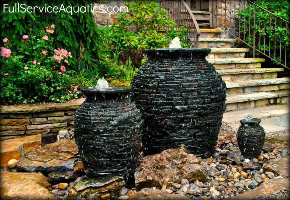 Endless styles of fountains displays can be customer created for your home or business designed by Full Service Aquatics.